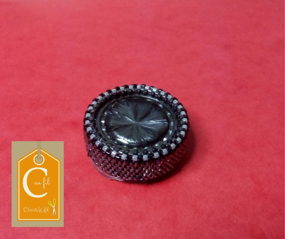 Bouton ref 52043 gris anthracite. Diamètre du bouton 3,5 cm serti de perles japonaises métalliques. Cette broche entièrement réalisée à la main permet de fermer votre veste ou gilet ou encore une écharpe même épaisse sans percer votre vêtement grâce à un aimant néodyme placé à l’arrière.