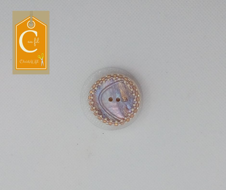 Bouton ref 51076 imitation nacre à dominance rose pâle, beige. Diamètre du bouton 3 cm serti de perles japonaises irisées, blanc, beige, rose pâle. Cette broche entièrement réalisée à la main permet de fermer votre veste ou gilet ou encore une écharpe même épaisse sans percer votre vêtement grâce à un aimant néodyme placé à l’arrière.
