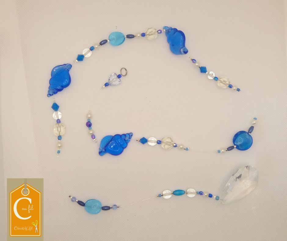 Suspension GM bleue et blanches avec coquillages